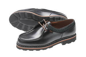 ともに100年以上の歴史とクラフツマンシップを現代に継承する、エルメネジルド ゼニアとパラブーツのコラボレーション。シューズは、外羽根シューズとモカシンの2型を用意する。いずれも、艶やかなレザーのアッパーに凹凸のあるソールを配し、快適な履き心地に仕上げている。