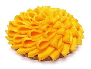 パブロ(PABLO)の「マンゴーとグァバのトロピカルチーズタルト」は、トッピングした鮮やかなマンゴーが南国のムードを感じさせるスイーツ。チーズ生地をベースに、グァバゼリーやカスタードクリーム、グァバナパージュ、カスタードクリームを順に重ねた。