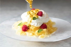 小田急ホテルセンチュリーサザンタワーの「台湾式ふわふわかき氷」は、マンゴーの程よい酸味が後を引くひんやりスイーツ。口の中でふわりと溶けてなくなるマンゴーとパッションフルーツ風味の氷の上に、クリーミーなコンデンスミルクをたっぷりと乗せた。