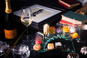 また、シャンパーニュ・メゾン「ヴーヴ・クリコ」が例年開催しているラグジュアリーハロウィンイベント「イエローウィン」の2019年テーマ「ホーンテッド・マナー」とコラボレーションし、怪しく華やかな空間を演出。「ヴーヴ・クリコ」を使ったスイーツや、「ヴーヴ・クリコ」のシンボルカラーであるイエローを取り入れたメニューも用意する。
