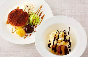 また常時3種類のチョコレートを楽しめるショコラファウンテンをはじめ、急速冷凍で仕上げるいも&栗入りのアイスクックなど、作る過程を楽しめるスイーツメニューもラインナップ。ディナータイムには、オードブルや食事メニューも合わせて提供する「スイーツ&ディナーブッフェ」も開催される。