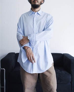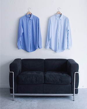 ベーシックなアイテムを異なるサイズバリエーションで展開していくエルイー。新作シャツは、着る人の個性と嗜好にフィットするよう、身幅や着丈の異なる9サイズを揃える。