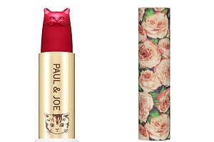 アイコニックなネコリップに、クリスマスライクなレッドカラーがラインナップ。寒牡丹柄のリップケースも入っている。