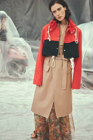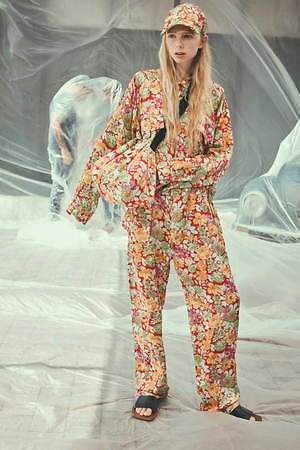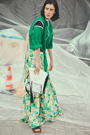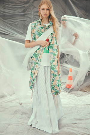 フローラルプリントも、境界線のないプレイフルなコレクションに一役買っている。ライトなカラーリングで描く花柄はまるでフェミニンの象徴のよう。ハイパーロングのスカートにあわせたり、ドローコードでシルエットを遊べるスポーティなロングベストにあわせたりと、表情豊かに組み合わるスタイリングは日常感たっぷりでエフォートレスだ。