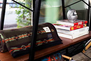 今回は、ペンドルトンの“ムチャチョブランケット”の中でも人気の柄“ストームパターン”にアスタリスクの要素をミックスしてデザイン。カラーはグレーとオリーブの2色で展開。グレーは“寒さ”や“雪”を、オリーブでは“自然の温かさ”や“緑”を表現した。