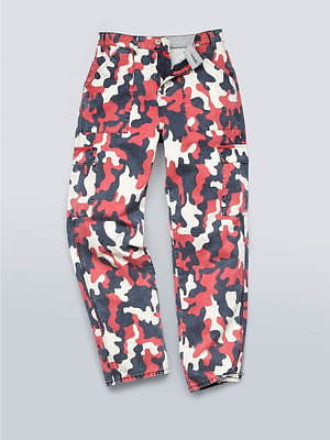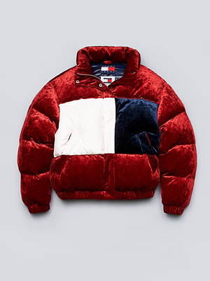 一方ウィメンズでは、デニムジャケットはライトカラーかつクロップド丈でカジュアルかつ軽やかに。また上品な光沢感をもつベロアパッファジャケットには、フロントとバックにフラッグパネルをあしらい、ノスタルジックな雰囲気に仕上げた。さらに、ベロアのモックネックニットプルオーバーやカラフルなカモフラージュ柄のカーペンターパンツを展開する。