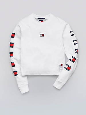 トミー ジーンズ フォール ヘリテージ コレクションでは、ブランドの代表的ウェアをアップデートしたスタイルを展開。各アイテムにはホワイト・レッド・ネイビーのフラッグモチーフをあしらい、モダンでありつつもどこか懐かしさを感じさせるコレクションに仕上げている。