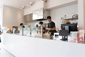 また、スマートフォンアプリを使用する事前注文・決済システムを導入。混雑時や忙しい時間の中でもスムーズにサラダを購入することが可能だ。