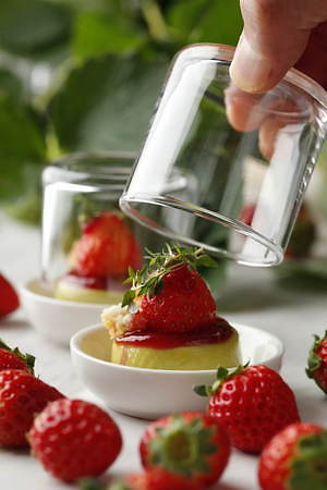 また、中段には「ヨーグルトクリームいちごソース」をセット。ヨーグルトクリームにたっぷりの苺ソースを合わせ、レモンピールをトッピングした爽やかな一品だ。なお、ドリンクメニューは優しい甘さのストロベリーミルクティーを含む全15種類となっている。