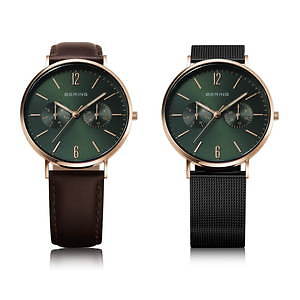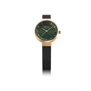 デンマーク生まれのベーリングから“北欧の森”をイメージした限定カラーのウォッチがチックタック限定で発売。深みのあるグリーンは、クリスマスツリーを想起させるこの時期にぴったりなカラー。ケースやインデックスは、上品に輝くローズゴールドを起用することで大人っぽい印象に仕上げている。