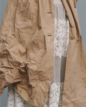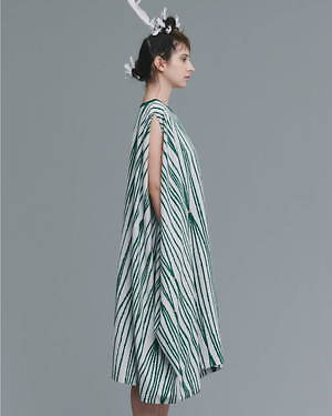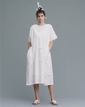 “紙”も今シーズンを紐解くキーワードの1つ。紙が舞う情景を大胆な構図で軽やかに表現した「curl」のドレスや、ページをめくっているかのような総柄をあしらった「page」のワンピースなど、鮮やかでグラフィカルなピースが、コレクション全体にアクセントを加えている。