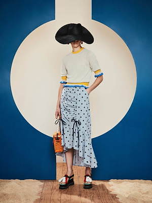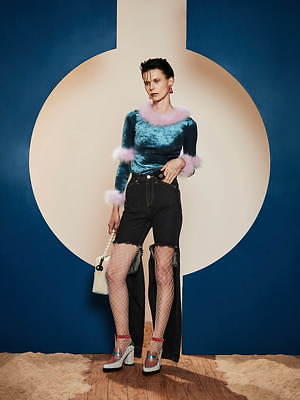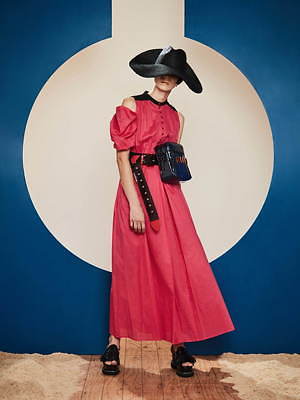 マニッシュとガーリーが共存した、パメオポーズらしい二面性のあるコレクションに彩りを添えるのは、個性豊かなアクセサリーたち。ペンホルダーを装備したミニバッグや、ドット柄のカラフルパンプス、UFOやスフィンクスをモチーフにしたピアスなど、過去と未来を繋ぐ、バラエティーに富んだシューズやアクセサリーが展開されている。