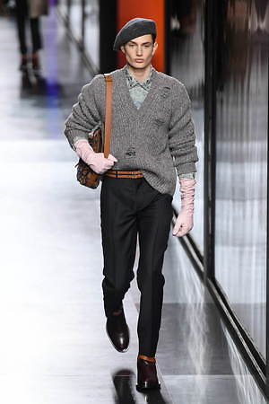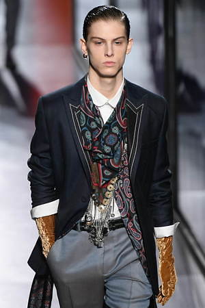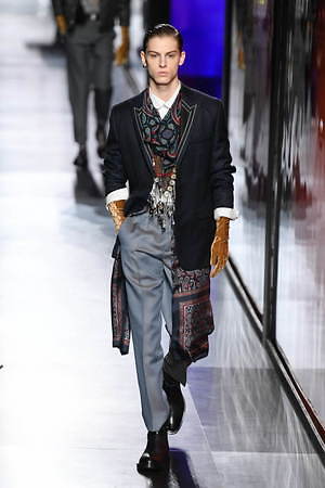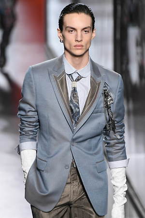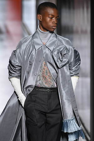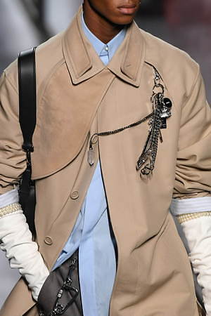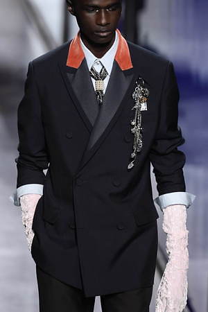 ジュディ・ブレイムとの想い出に捧げるとキム・ジョーンズが示した今季は、ジュエリーアーティストでありスタイリストでもあったジュディ・ブレイムへオマージュを捧げるもの。ジュエリーのついた帽子をはじめ、彼自身そして彼のクリエーションを想起させる要素を随所に散りばめている。