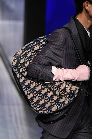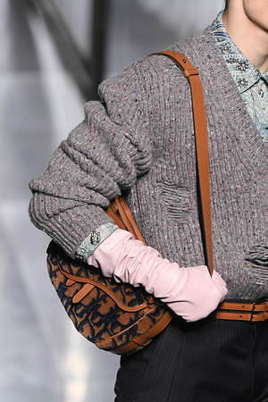 ディオールのアーカイブを用いて、メゾンの時代を超越したエレガンスを讃えるキム・ジョーンズならではのアプローチで、ディオールが大切にしているトワル ドゥ ジュイは、ジュディ・ブレイムにオマージュを捧げ、” トワル ドゥ ジュディ”として、今季、モチーフを大きく取り上げたニットとして登場。アイコンのオプリーク柄のバッグは、全てのDマークに刺繍を施した贅沢なデザインに仕上がっている。