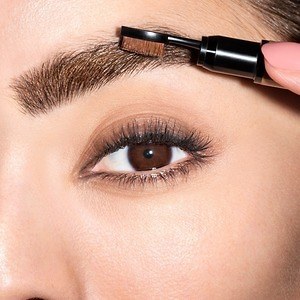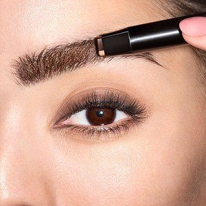 使い方はブロウカラーで眉の形を整えながら、ルミナスカラーでパールをプラスするだけ。ペンシルの反対側に付いている高密度ブラシを使えば、2つのカラーを均一になじませることができ、ふんわりと空気を含んだような立体眉が叶う。