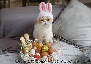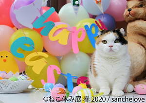 2020年初の開催となる名古屋会場では、⽢え猫のホイちゃんや⽔が飲めない猫“なごむ”をはじめ、愛らしいスター猫のフォトプロップスが多数登場し、「ねこ休みイースター」としてイースター仕様にデコレーションされた癒しの空間を楽しめる。作品250点以上の展示が行われ、名古屋初上陸の動画コーナーも設置される。