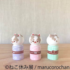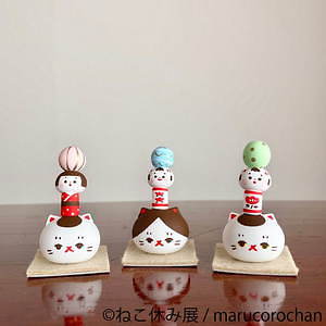 また、2,000種以上のグッズが集結する物販にも注目。灯さかすによる描き下ろしアートポスターや、ちくわちゃん×アップルココのオリジナルチャーム、ぼく×灯さかすのコラボレートマスキングテープなど、チャーミングなグッズが勢揃い。marucorochanは、イースター&雛祭りをイメージしたグッズとして、「ねこアタマ(こけし)イースターver.」や「ねこ乗せおひなさま」などを販売する。