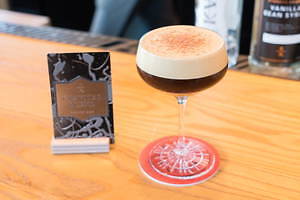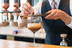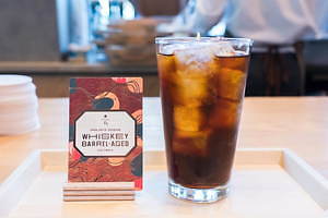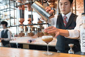 ウイスキー樽の中で熟成したコーヒー豆を使った、メインバーで人気のノンアルコールビバレッジ「バレルエイジド」シリーズ。新たに登場する「バレルエイジド ハイボール」は、その名の通りハイボールから着想した1杯だ。