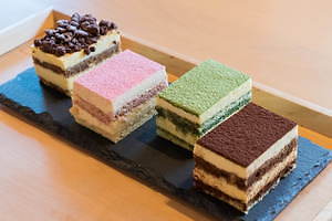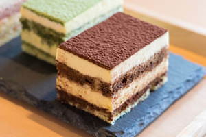 これまでにない新たなティー体験が出来る2階「ティバーナ」とのコラボレーションでは、日本のお茶“抹茶”を使用した「ティラミス ティバーナ 抹茶」を用意。緑の鮮やかな香り高い京都宇治産の抹茶を天面とスポンジの両方に採用。抹茶の深い味わいとマスカルポーネチーズが織りなすハーモニーを楽しんでみて。