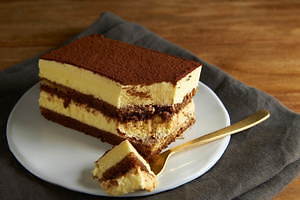 奥深いコーヒーの世界へと誘う1階の「メインバー」とコラボレーションしたティラミス「ティラミス スターバックス リザーブ コーヒー」は、スポンジ部分に希少な「スターバックス リザーブ コーヒー」を染み込ませた一品。コクのあるマスカルポーネチーズと、トッピングのサクサクとしたココアクランブルがコーヒーの風味と絶妙にマッチする。