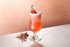コーヒーやティーを使った革新的なカクテルを味わえる3階「アリビアーモ」とは、熟成度の高い“V.S.O.P.ブランデー”を加えたマスカルポーネチーズが香る「ティラミス アリビアーモ ストロベリー」を開発。フリーズドライのストロベリーパウダーを掛けた天面、ストロベリーシロップに浸したスポンジが演出する“苺感”とブランデーの香りが好相性な、大人のティラミスとなっている。