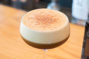 水出ししたコールドブリューのバレルエイジドコーヒーを炭酸で割り、ウッディなフレーバーシロップと、飲みやすさや爽快感に繋がるアクセントとしてレモンをプラス。レモンの果実をトッピングするほか、レモンピールを絞って振りかけることで、より爽やかな香りを感じられるように仕上げた。