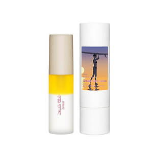 「uka ヘアオイルミスト オンザビーチ ガール ラヴァーズ」は、“マリブビーチ”のカクテルを連想させる甘くフルーティーな香り。精油には、ココナッツやオレンジをブレンドしている。