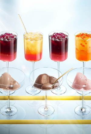 フルーツジュレは、清涼感のある「ブラッドオレンジ&レモン」「マンゴー&パッションフルーツ」、ピーチとカシスの絶妙なコンビネーションを味わえる「ピーチ&ブラック カラント」を揃える。