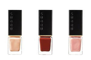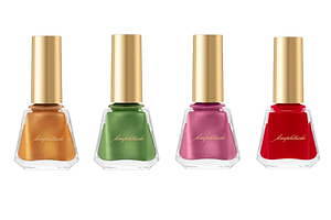 SUQQU(スック)人気のネイルカラーに、秋の限定色が仲間入り。小さな柄入りのガラス玉「蜻蛉(とんぼ)玉」をテーマにした今季は、金箔のように輝くゴールドや透け感を高めたピンクパールなどがラインナップする。