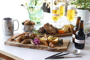 目玉となる「コミューン クラフト」は、キレ味となめらかなのど越しをバランスよく楽しめるオリジナルビール。チェコで生まれたピルスナービールの伝統を維持しつつ、大麦&小麦といった2種類の麦芽と、ニュージーランドザーツ&ノーザンブルワーの2種類のホップをブレンドしている。また日本発の本格クラフトビール「アウグスビール」のIPAやホワイト、ダークなども用意した。