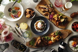 ビールと合わせて楽しみたいのが、鶏手羽のガーリックグリルが主役の「ガーリックチキンプレート」や、自家製BBQソースのスペアリブがメインの「BBQ スペアリブプレート」といった限定メニュー。それぞれに唐揚げ、フライドポテト、ピクルスもセットになっている。