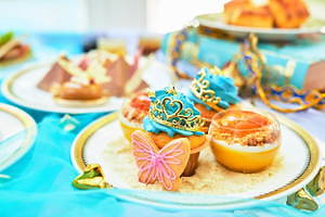 アラビアンナイトブランマンジェ、タイガーのチョコバナナタルト、マカロンピスタチオ、魔法のランプクッキー、マンゴーとお花ベリーヌ、ジャスミンティーのカップケーキ、ピラミッドのムース、砂漠のオアシスムース
