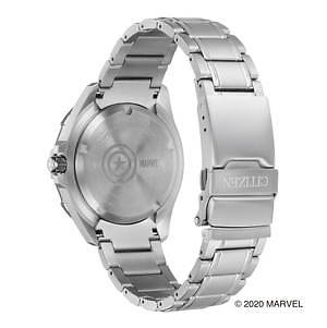 ケース&バンドには、「マーベル・スペシャルモデル」では初めてとなる、タフで傷がつきにくいシチズン独自素材スーパーチタニウムを採用。アベンジャーズのリーダーである“キャプテン・アメリカ”の屈強さを連想させる、200m潜水用防水のダイバーズウオッチとなっている。