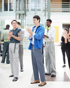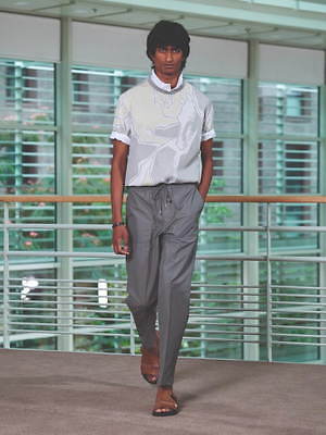フランス人アーティストのシリル・テスト(Cyril Teste)とのコラボレーションによるライブパフォーマンスとともに披露された、今季のコレクション。流麗なシルエットとカジュアルな質感を基調に、夏らしく軽やかでシンプルな雰囲気の装いを提案した。