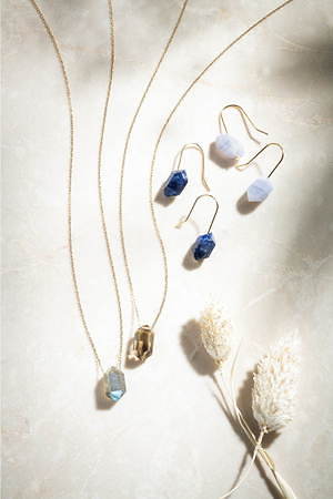 「アニバーサリー」:バースデーストーンのネックレスや天然石のロングネックレスなど、誕生日や記念日の贈り物にもぴったりな特別なジュエリーが展開される。