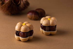 さらに「栗ほうじ茶最中」は、ぽってりとした花形がかわいらしい最中。栗と好相性の粒あんとともに、香り豊かなほうじ茶のチョコレートクリームを挟んだ。