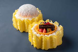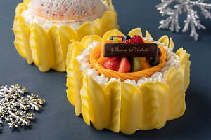 また、同じく飴細工のドームを添えた「クリスタル グランド プレミアム リコッタタルト」は、色鮮やかなフルーツをふんだんに飾り付けた“濃厚”リコッタチーズタルト。たっぷりの苺に加え、ラズベリーやマンゴー、キウイなどをあしらい、華やかな見た目に仕上げている。