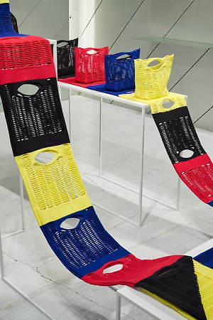 グッド グッズ イッセイ ミヤケの「モッコ」は、一本の糸から編み上げた、軽く柔らかな素材感のニットバッグ。縄や竹などを網状に編んだ運搬用具「畚(もっこ)」からインスピレーションを得たバッグとなっており、買い物など日常の様々なシーンで活躍してくれる。