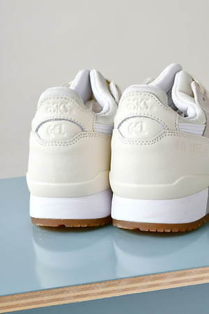 なお、今回の別注スニーカーのベースとなった「ゲルライト スリー OG」は、1990年に三ツ井滋之がデザインした「ゲルライト スリー」の形状と構造を受け継いだもの。スニーカーのベロ部分を縦に大きく2分割したスプリットタンが特徴で、甲部分を包み込むようなフィット感とベロがずれにくい設計が特徴だ。