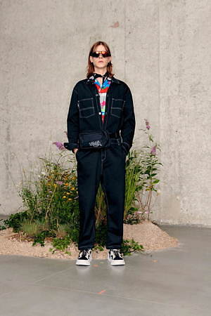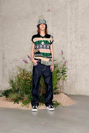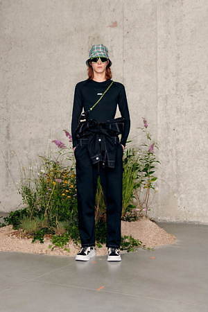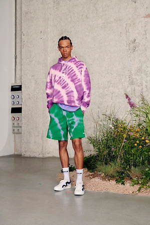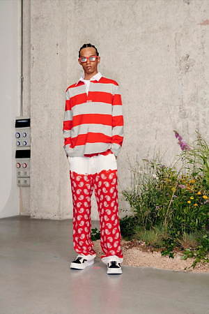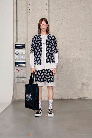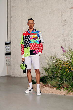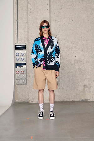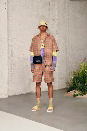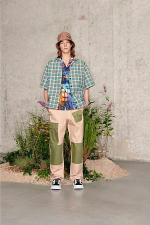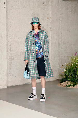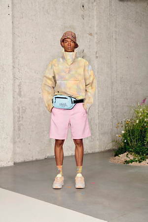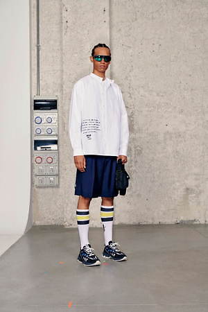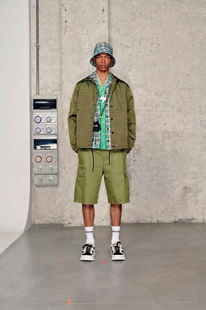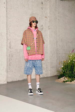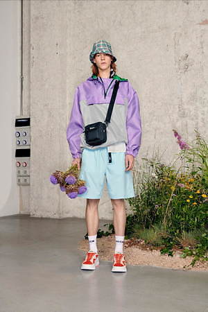 春夏の開放的なムードを存分に楽しむアイテムとして、軽やかなハーフパンツを取り入れたスタイリングも散見された。ペールピンクに、タイダイ柄のテクニカル素材ジャケットを合わせたルックは、水色のウエストポーチを加えることで、楽し気なカラーコンビネーションを演出。またボーダー柄のカーディガンをインサートしたチェック柄の2ピースは、素肌を覗かせるハーフパンツが、春夏の爽やかな空気へと誘い出している。