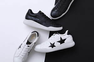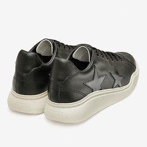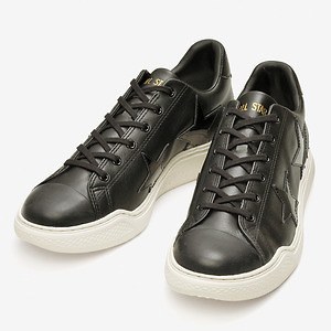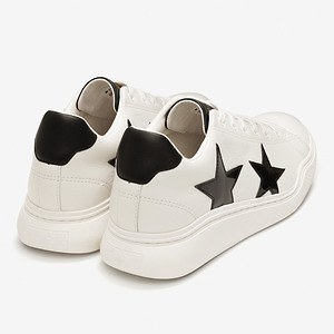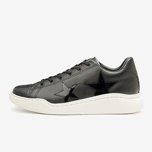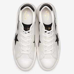アッパーには高級感溢れる上質なレザーを採用。カラーは、ブラックカラーのスターが際立つホワイトと、マットなレザーにパテントレザーのスターで立体感を演出するブラックの2色を展開する。