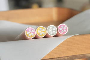 リップの底には、4つの縁を表す“しあわせ桜”マーク入り。どれが当たるかは、パッケージを開けてみるまでのお楽しみだ。