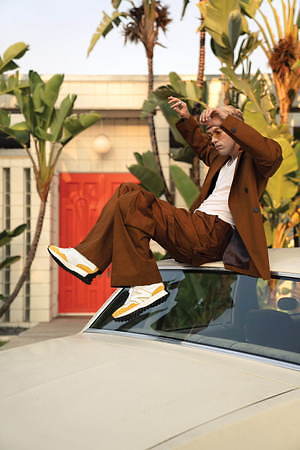 素材には、パンチング加工を施したレザーとピッグスキンスエードを使用。バランスよく組み合わせることで、立体的な表情に仕上げている。