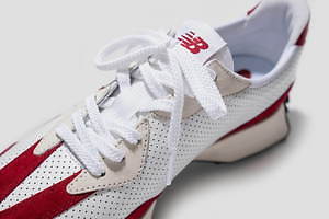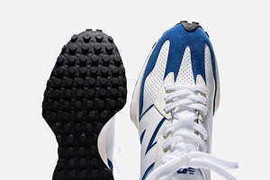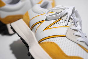 「327 プライマリーパック(327 primary pack)」と題した今回の新作は、ホワイトをベースにした3つのカラーで構成。つま先やかかとのパーツに、落ち着いたレッドとブルー、鮮やかなイエローをそれぞれ組み合わせた。