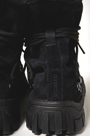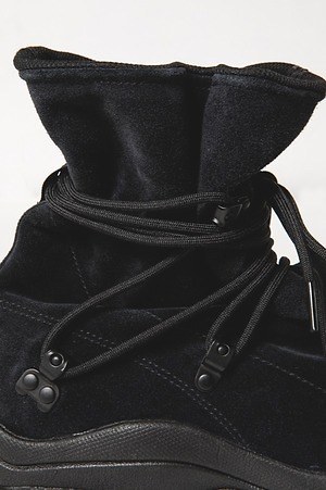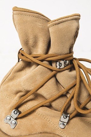 本モデル最大の特徴は、コンバットブーツのように履き口で靴ひもを足首に巻きつけるデザイン。履き口の広さを調整できるので、パンツインスタイルなど様々な着こなしを楽しめる。