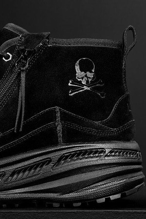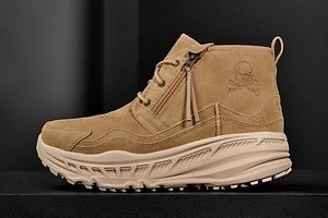 また、UGGのチャッカブーツをベースに、「CA805」のソールを組み合わせた「CA805 Neumel」も登場。フロントには“MASTERMIND”のフォントが、サイドにはスカル&ボーンズが型押しで施されている。
