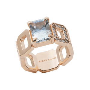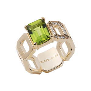 リーフェ ジュエリーは、「Y-3(ワイスリー)」のアクセサリー類全般の制作に携わった春井里絵によるジュエリーブランド。宝石学のスペシャリストに与えられる称号「グラジュエイト・ジェモロジスト」を持つ春井自ら買い付けした、高品質なカラーストーンを使用しているのが特徴で、ジュエリーのひとつひとつは全てメイド・イン・ジャパンの製作にこだわっている。