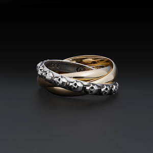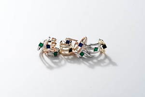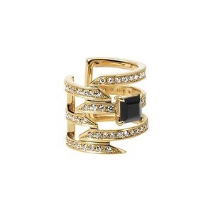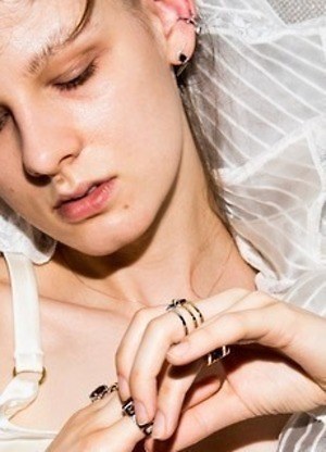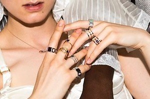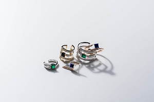 新作は、そんな美しいカラーストーンを主役したリングやイヤージュエリー、ネックレスなど。中でもリングを複数重ねたように見えるイヤーカフは、華やかさとエッジイな表情をプラスしてくれるおすすめアイテム。ラピスラズリやブラックオニキス、グリーンアゲートが、それぞれ中央で輝くリュクスな佇まいに仕上げている。