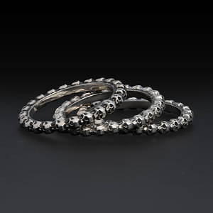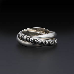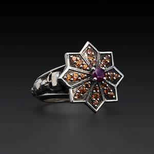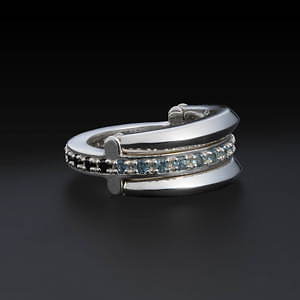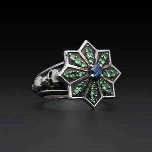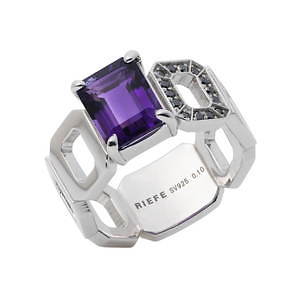 リーフェ ジュエリーならではの直線美やカラストーンのコンビネーション、そしてギロームが得意とするシルバージュエリーならではの“スカルプ”やゴシック要素を掛け合わせたリングやイヤリングなどが展開される。