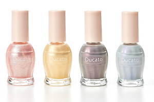 デュカート(Ducato)は、木漏れ日やおぼろ雲など、自然の情景から着想したパステルカラーネイルを春限定発売。パープルの偏光パール入りグレーやレッド&イエローの偏光パールを含んだイエローなど、おしゃれな全4色がラインナップする。